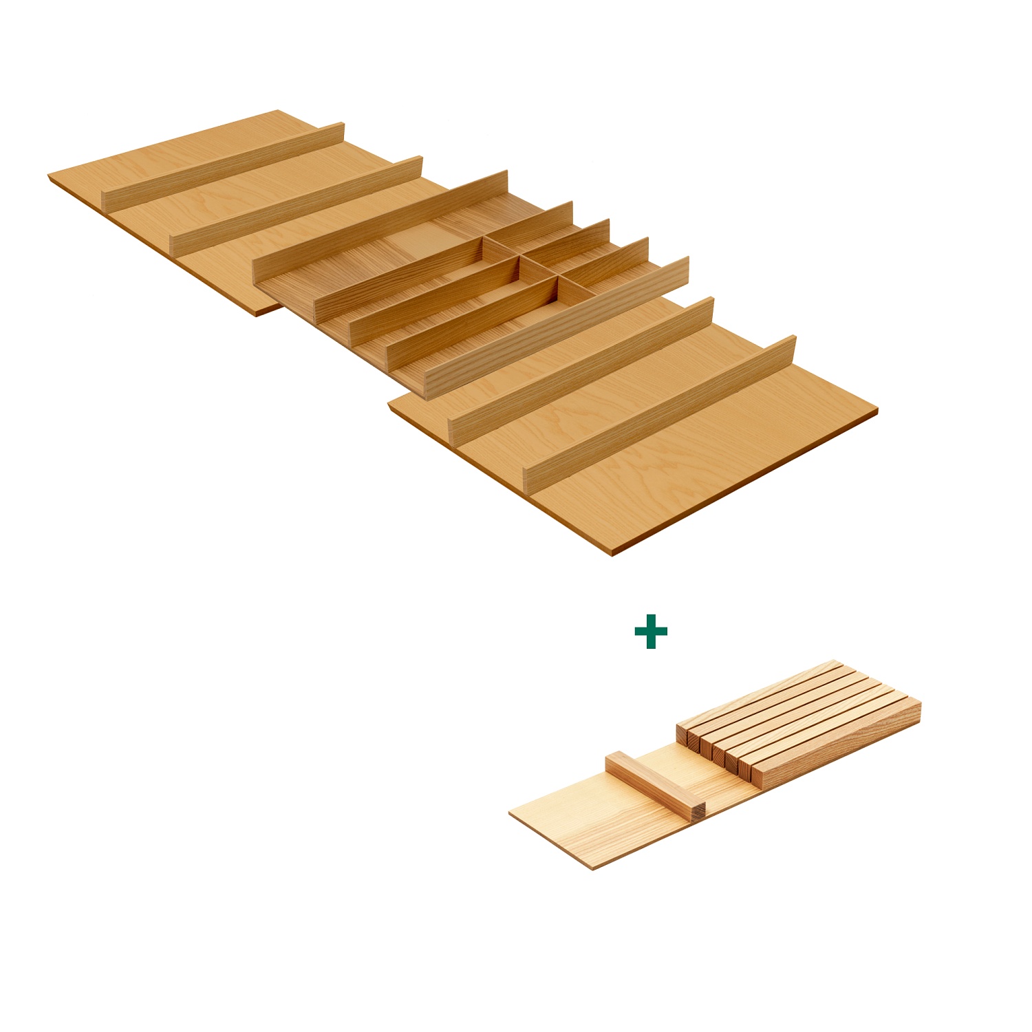 —КОМПЛЕКТ лоток + держатель для ножей, ФайнЛайн Линик 1000-1200 мм, глубина 500 мм, цвет ДУБ натуральный Kessebohmer