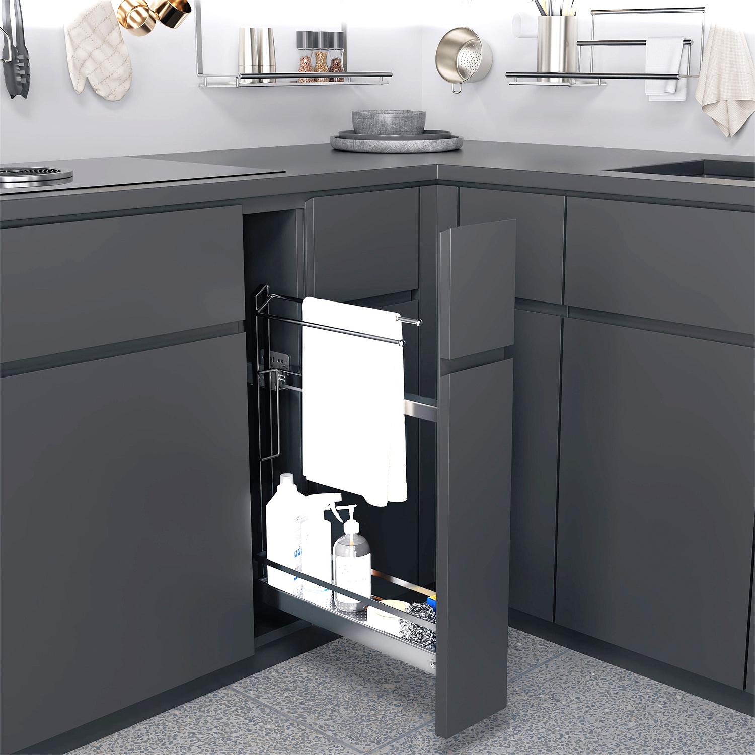 Бутылочница №15 для полотенец H 592 фасад 150 мм 3D