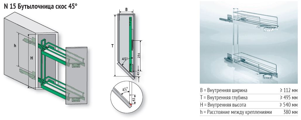 Бутылочница 150 мм + скос 45°, левая, Арена КЛАССИК, цвет ХРОМ, 1 уп. (2312110005)