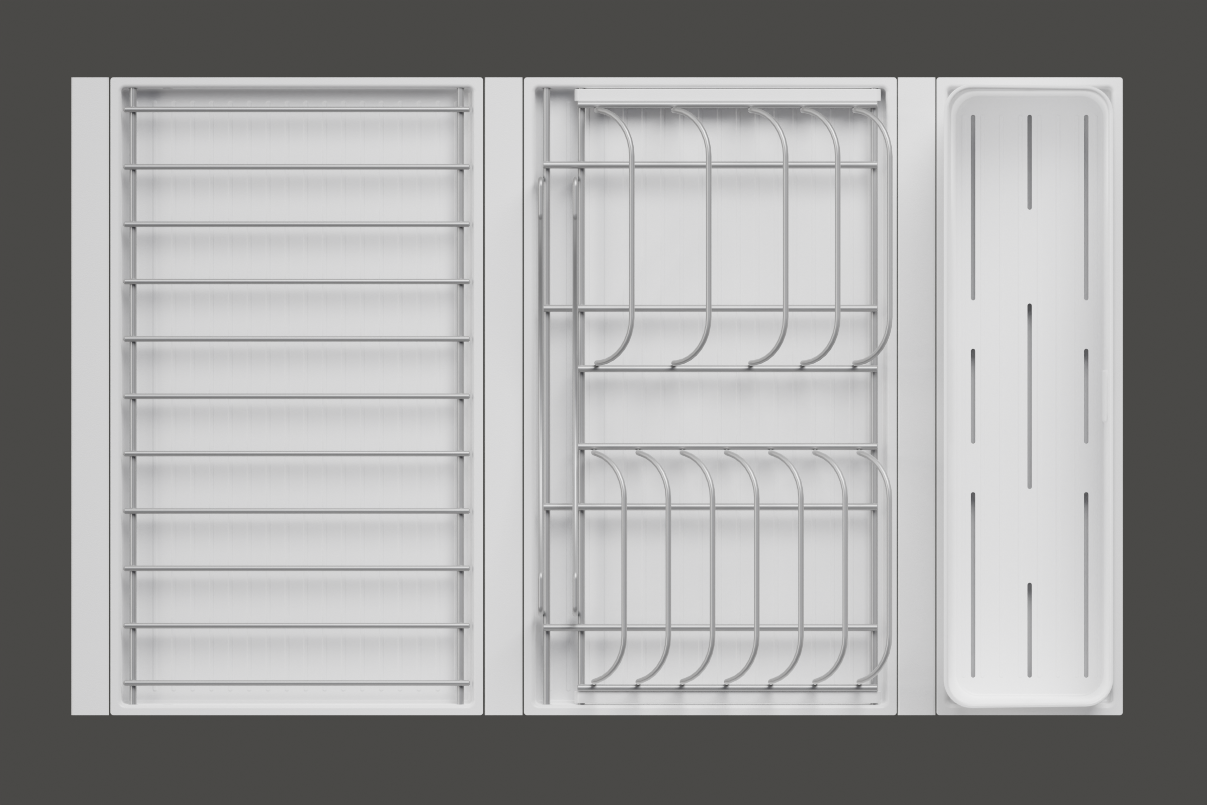 1 для посуды большой (423 x 248 мм, состоит из 1 х держатель металлический, 1 х поддон пластиковый, 2 х защелка-ограничитель)