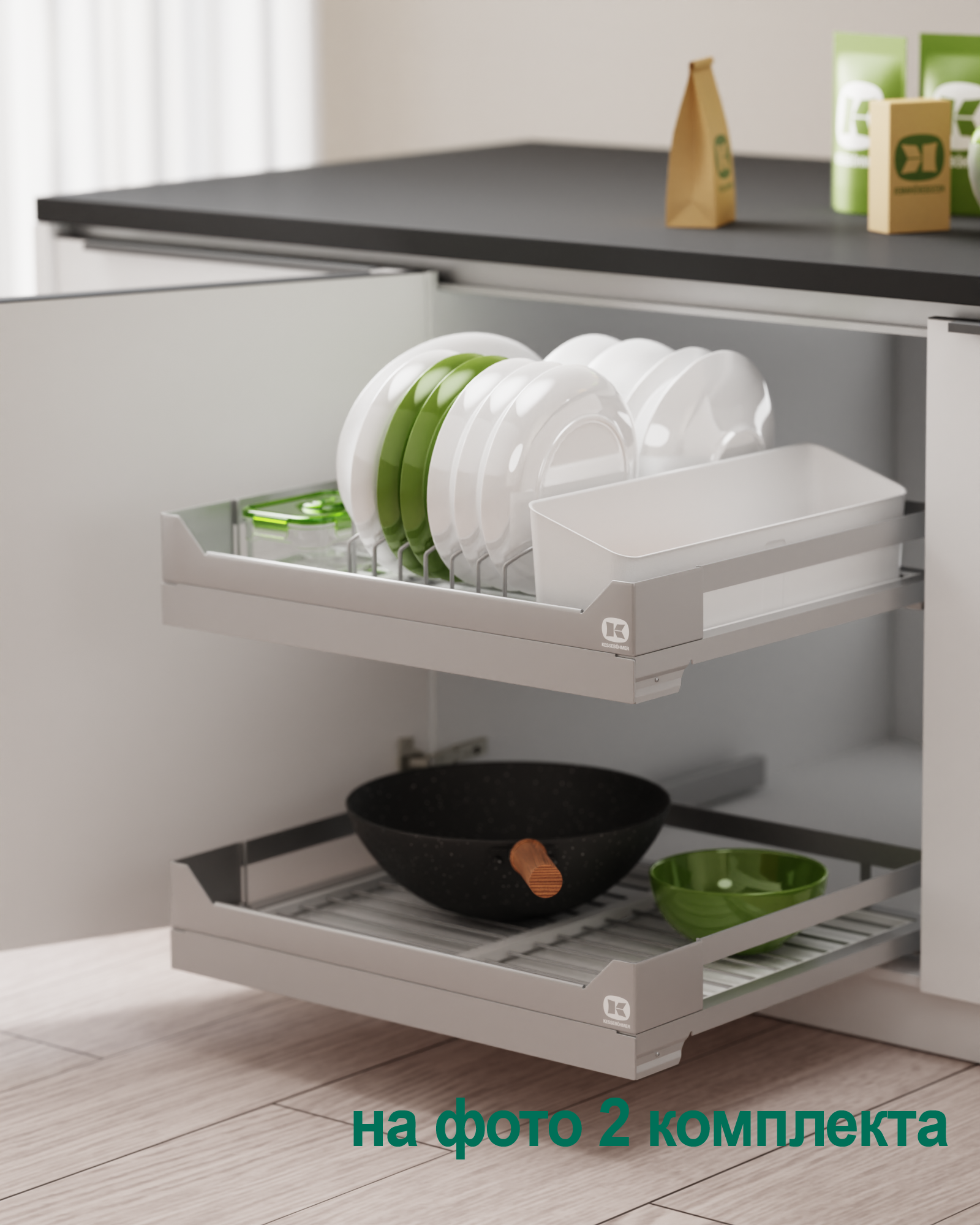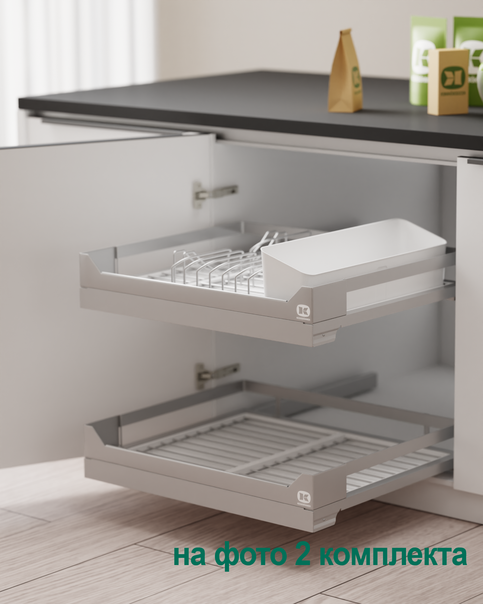 1 для посуды большой (423 x 248 мм, состоит из 1 х держатель металлический, 1 х поддон пластиковый, 2 х защелка-ограничитель)