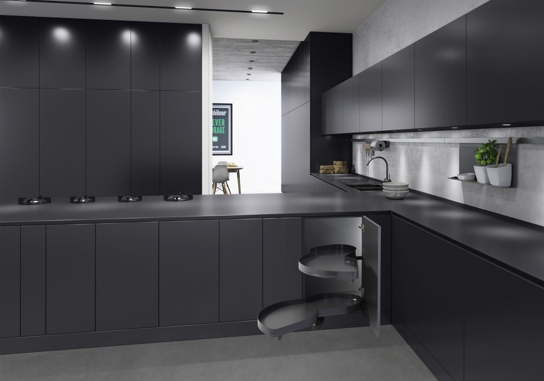 Комплект полок левый, Леманс 500 мм, Арена ПЬЮР, 2 полки + рычаги, цвет АНТРАЦИТ, цвет дна Антрацит, антислип (2603959846)