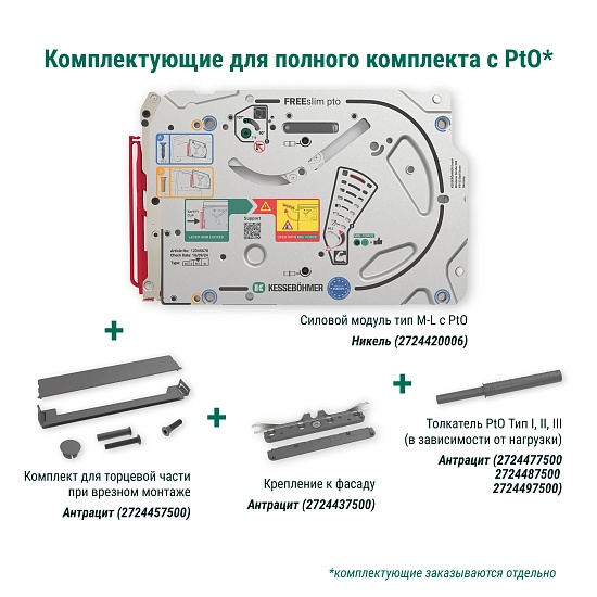 Силовой модуль тип M-L Pto левый и правый, к подъемнику ФриСлим Флап, H 225-650, 2 шт