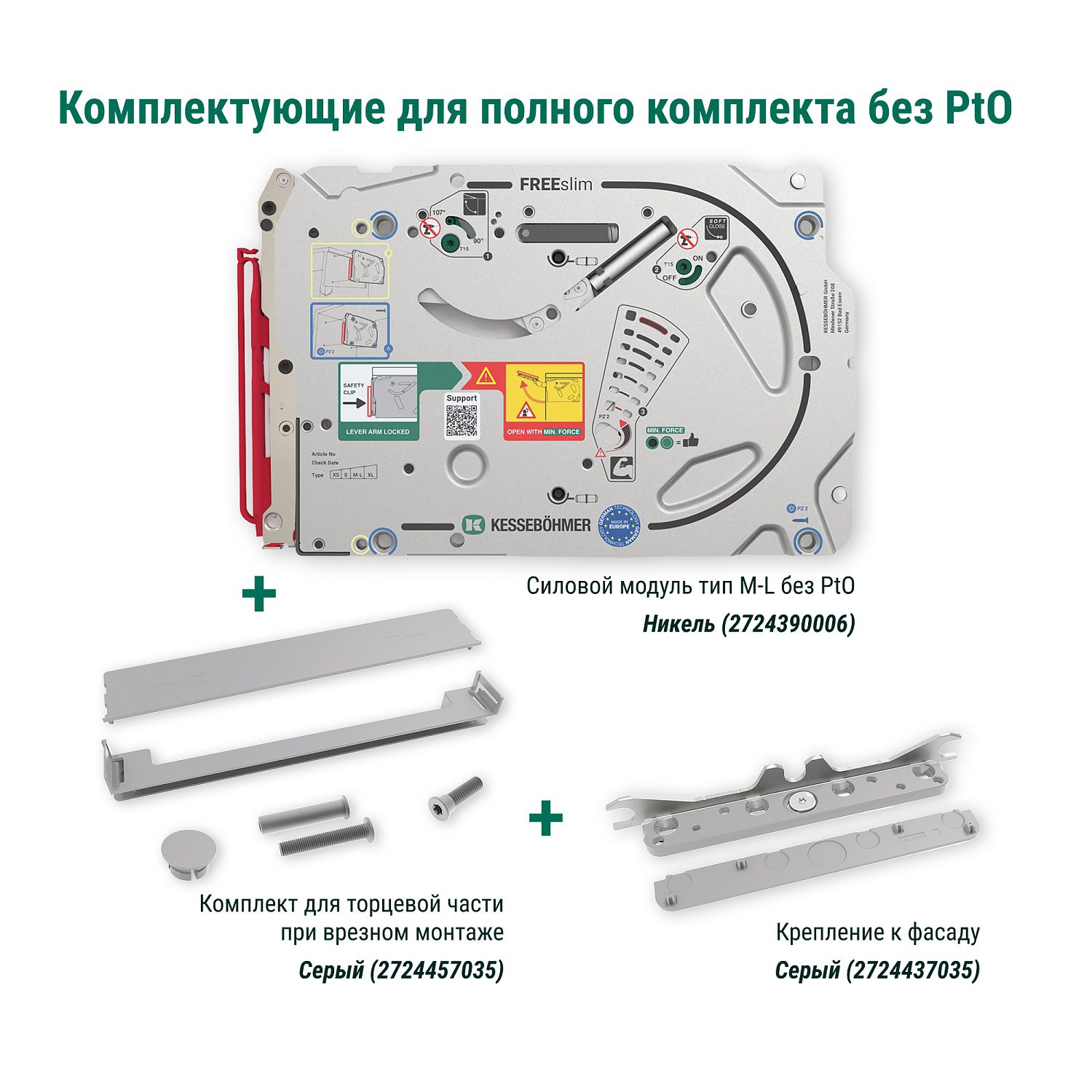 Полный комплект подъемного механизма ФриСлим ФЛАП с доводчиком для врезного монтажа, цвет СЕРЫЙ Kessebohmer | официальный магазин