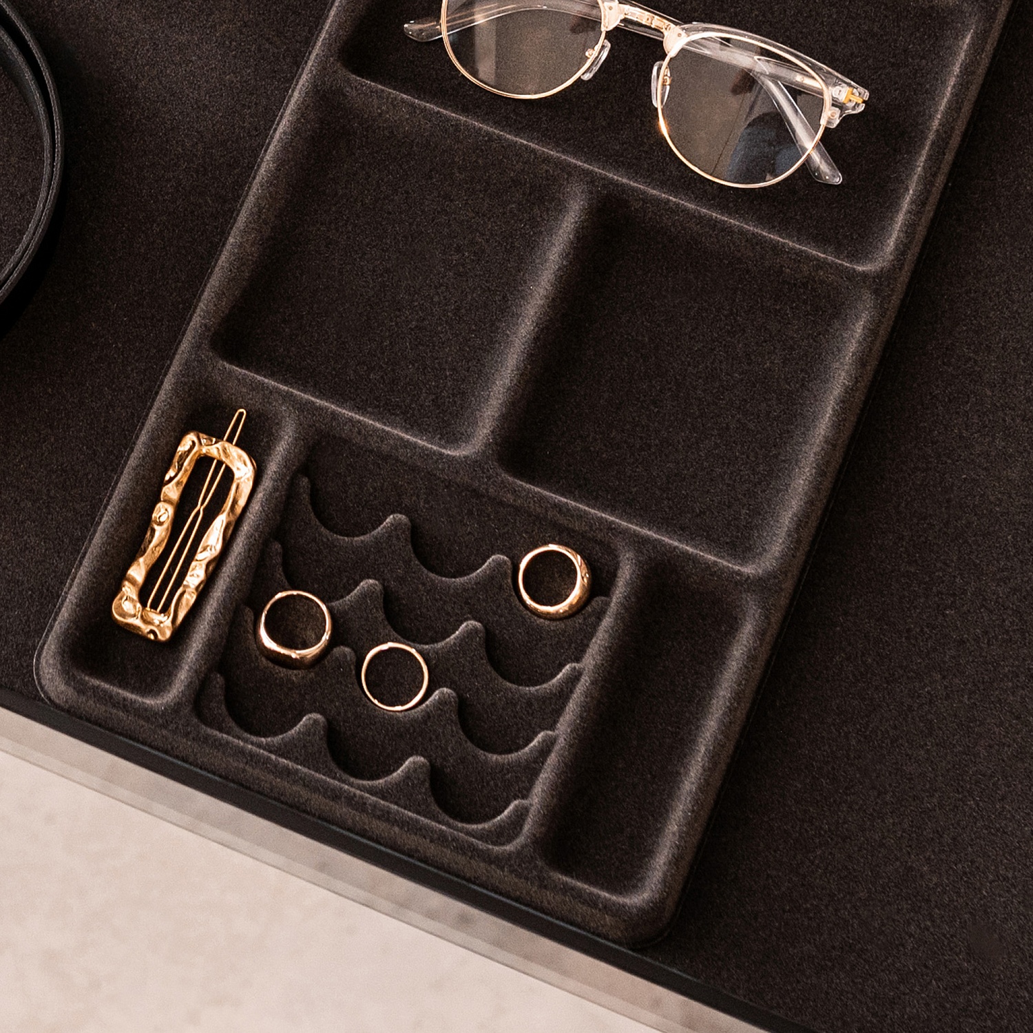 —Лоток для колец и украшений 6 ячеек в полку Конеро D 345 мм цвет ЧЕРНЫЙ Kesseböhmer
