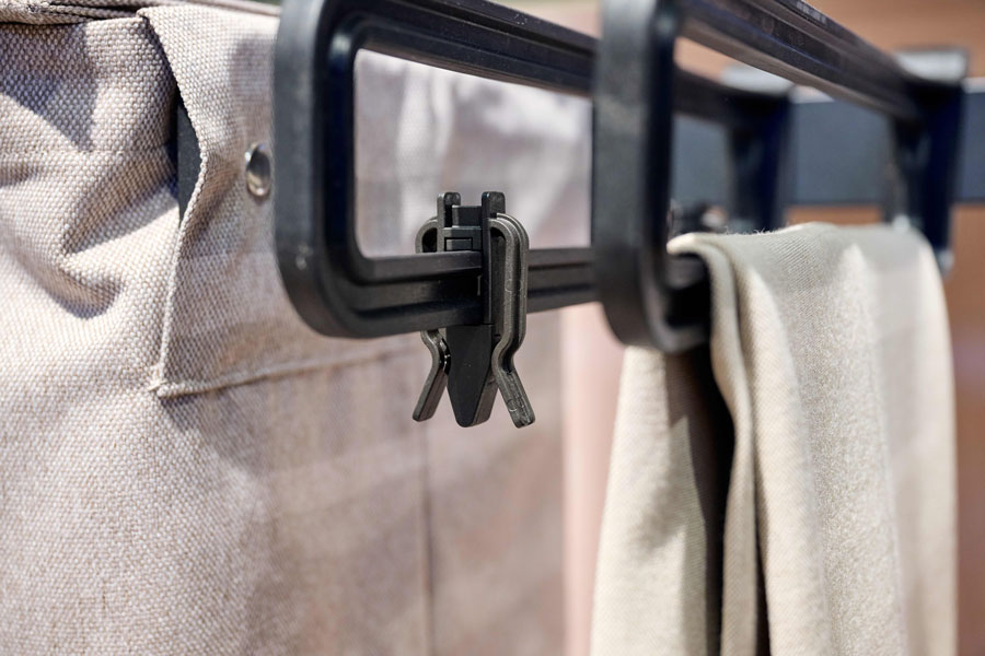 Зажимы для юбок. Хранение брюк на вешалках Conero было идеальным, для хранения юбок чего-то не хватало. Теперь вешалки будут комплектоваться специальными зажимами для юбок. Также эти зажимы можно будет приобрести отдельно и укомплектовать ими ваши вешалки Conero.