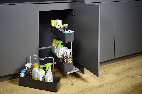 Клининг Агент - выдвижной модульный механизм для хранения чистящих средств и принадлежностей для уборки.