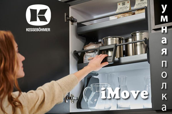 Умная полка iMove обеспечивает быстрый доступ к содержимому в высоких кухонных шкафах без дополнительных приспособлений. АйМув заменяет собой вторую и третью полки в шкафу. Механизм плавно опускается в зону удобного обзора и надежно фиксируется в этом положении.